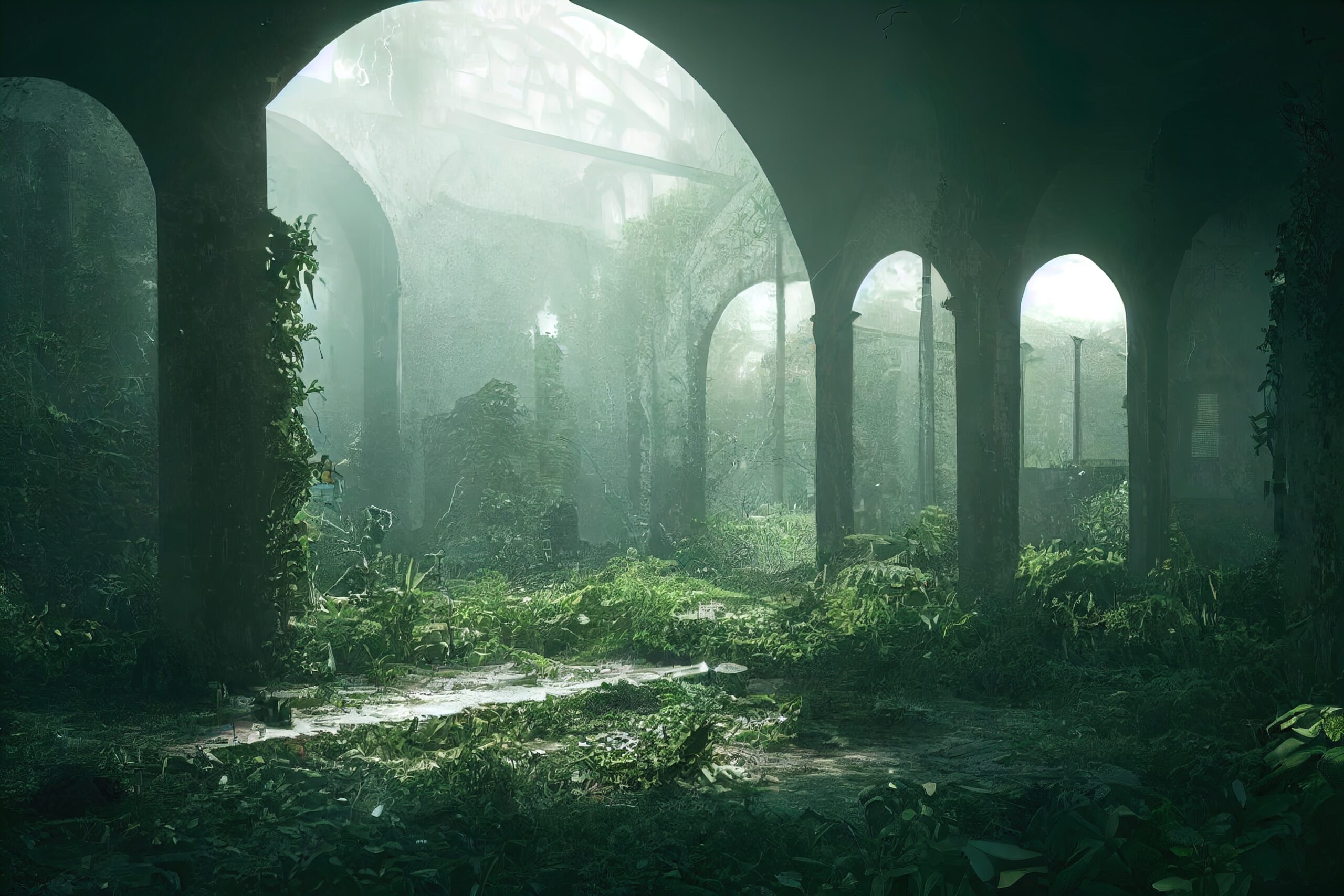 Crumbling,Interior,Ruin,With,Arches,And,Columns